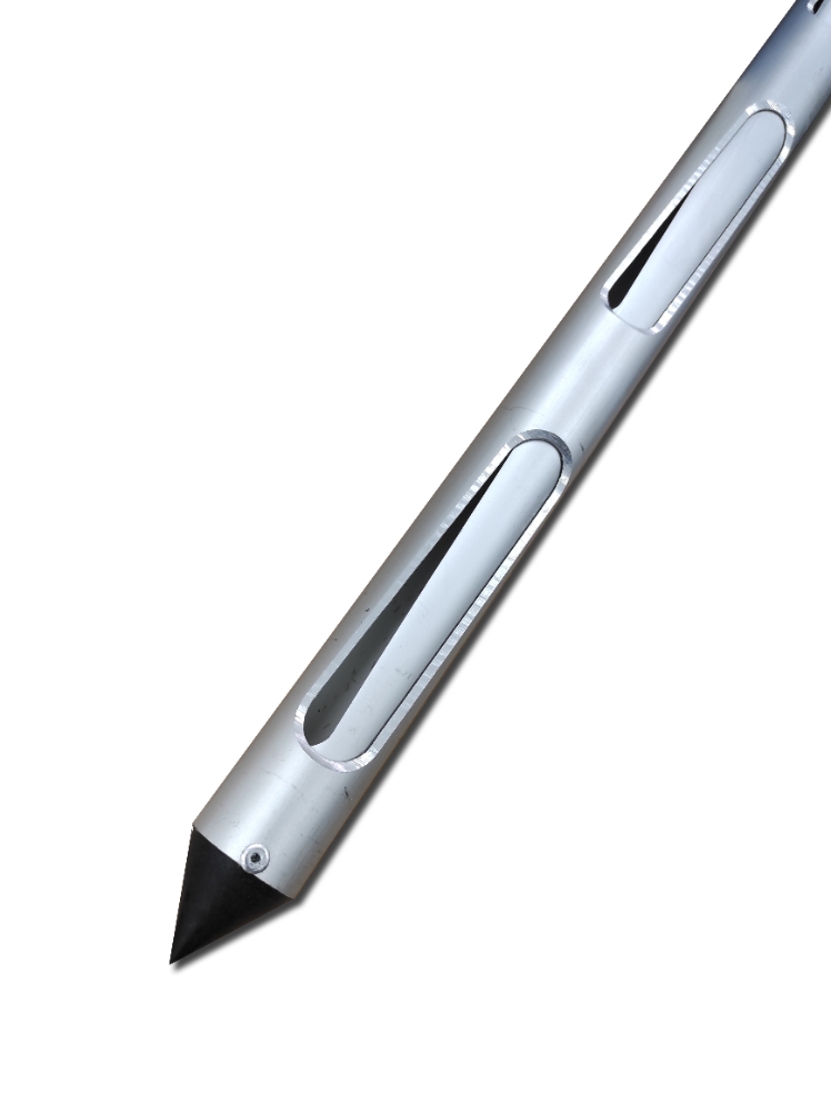 Гладенький конусний наконечник утворює вістря, що полегшує введення корпусу пробовідбірника в зерновий насип шляхом розсування її частинок в сторони.